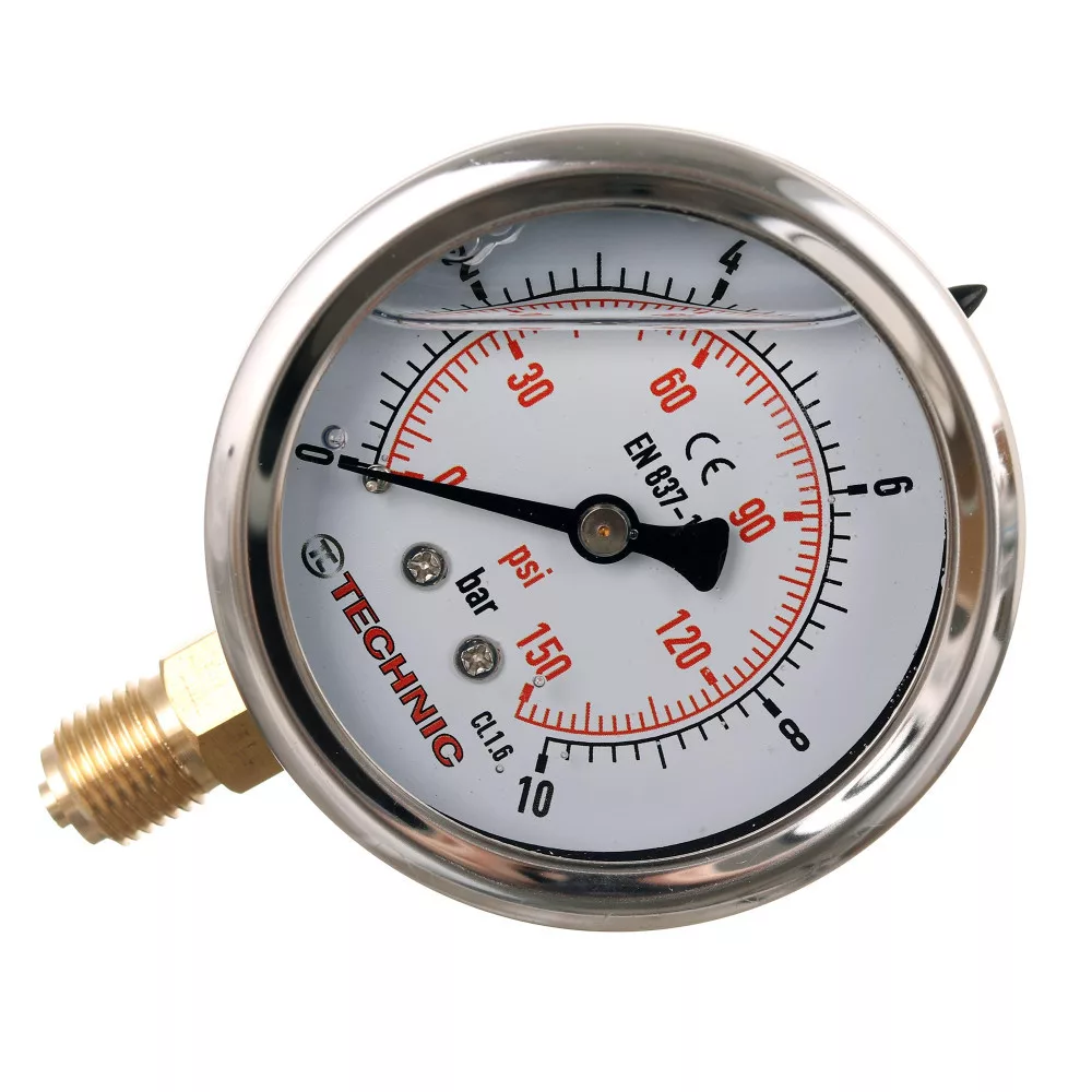 Manométer Nyomásmérő 0-10 Bar Glicerin Csillapítással 1/4"