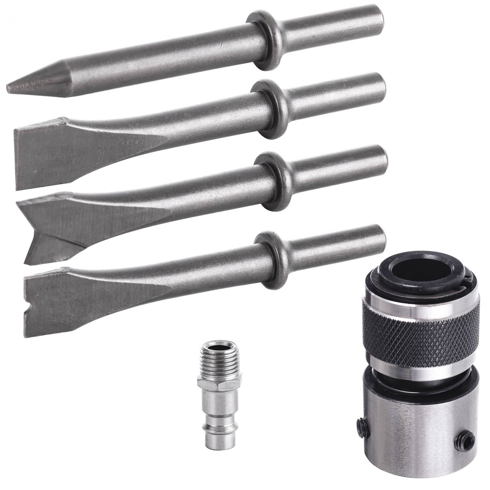 A készletben található különböző formájú vésőszárak lehetővé teszik a lemegmunkálásokat, hegesztési varratok tisztítását, régebbi bevonatok eltávolítását, valamint általános bontási és alakítási feladatokat fémeken.