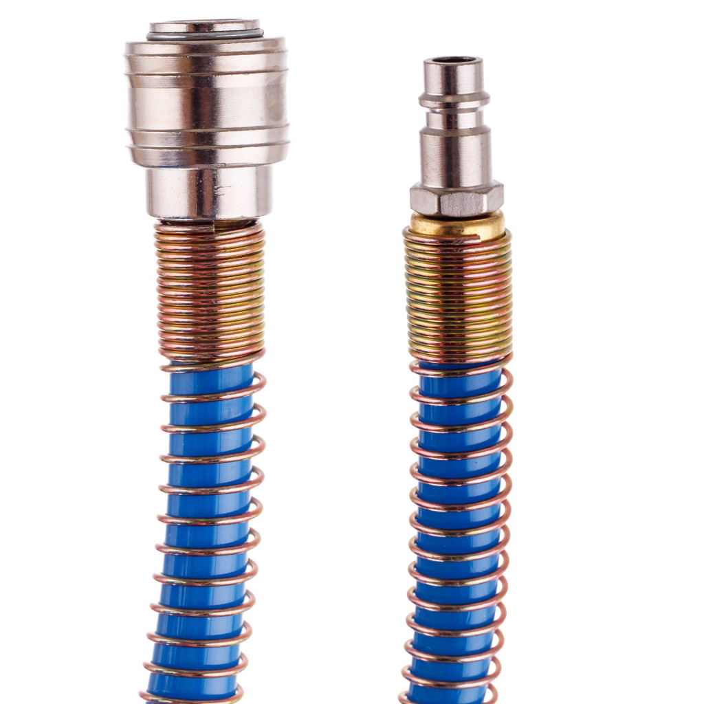 • Azonnali Használat: A standard gyorscsatlakozókkal ellátott végek lehetővé teszik a gyors és egyszerű csatlakoztatást bármilyen kompresszorhoz vagy pneumatikus eszközhöz.