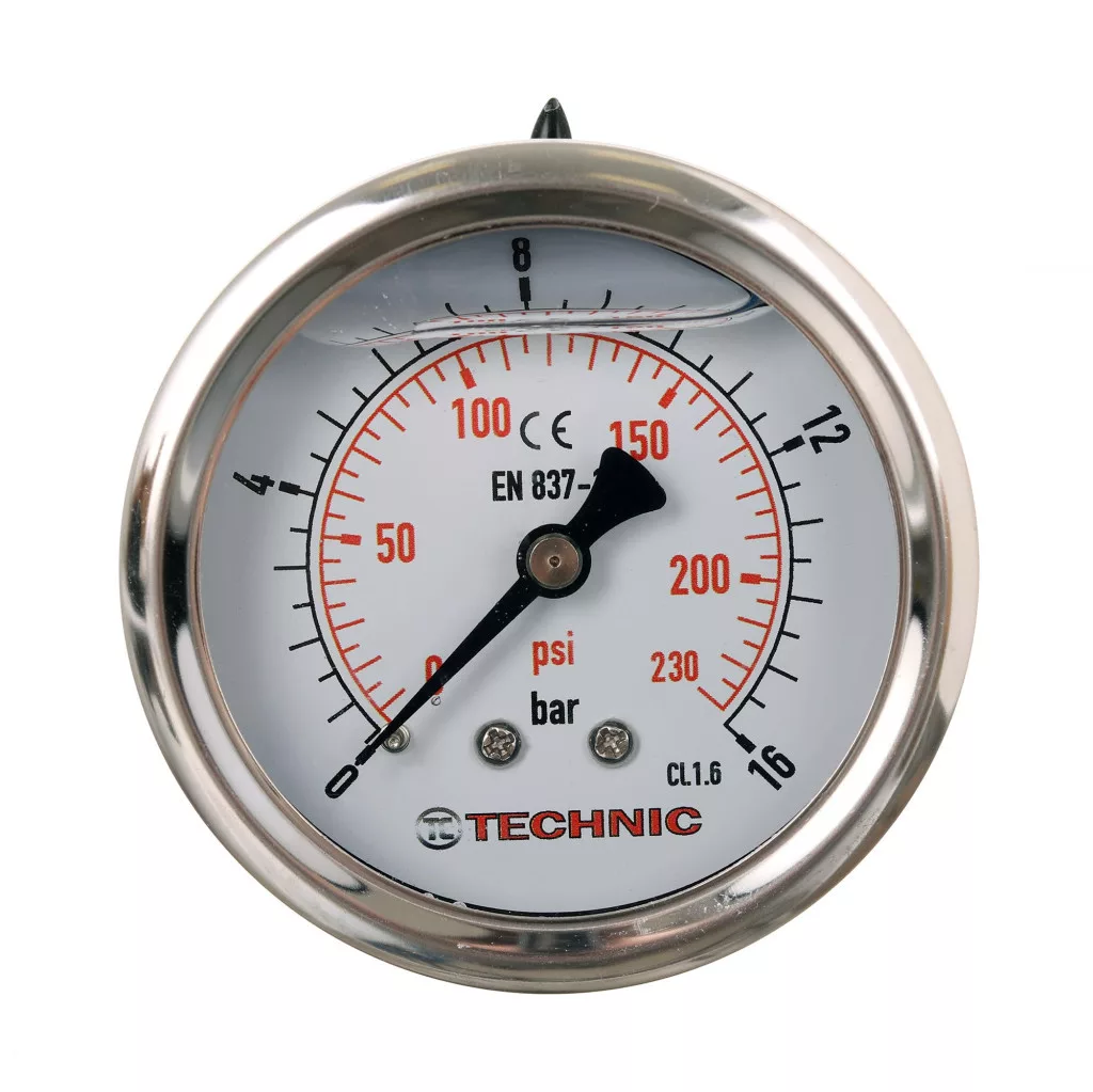 TC Technic Glicerines Nyomásmérő Óra 63mm, 0-16 Bar, 1/4" Hátsó Csatlakozás